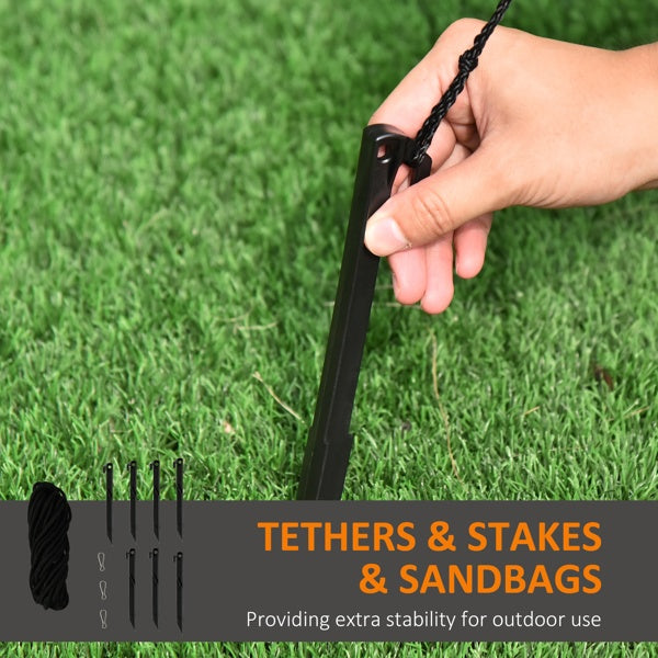 - - Internal fan, three tether ropes, seven ground stakes, and three sandbag included