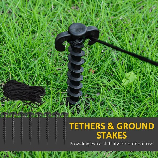 - - Includes eight ground stakes and four drawstrings to help keep it anchored on windy nights