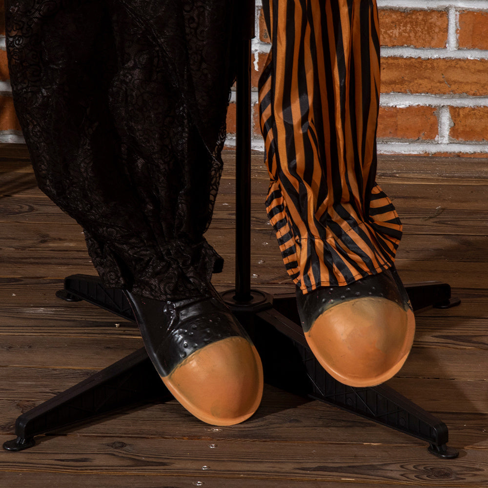 - - CREATE A CREEPY SCENE: Get ready for some spine-chilling fun! This Halloween decoration features a creepy circus clown dressed in a tattered, dark clown suit — great for adding an eerie touch to your outdoor display.