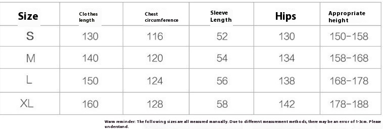 Size: S size recommended height 145-157cm,M size recommended height 158-167cm,L size recommended height 168-177cm,XL size recommended height 178-188cm